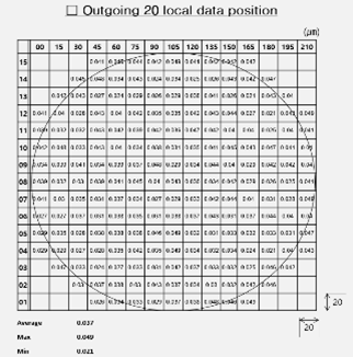 <Flatness> • Global Flatness (Ø300mm) : < 200nm • Local Cell Flatness (□20×20mm) : < 50nm • Slope X/Y : < 6u rad (RMS, 3×3mm) <Roughness> • Sa range of 20~120 nm (SiC, Pin top surface) • Soft polish 적용 가능 |